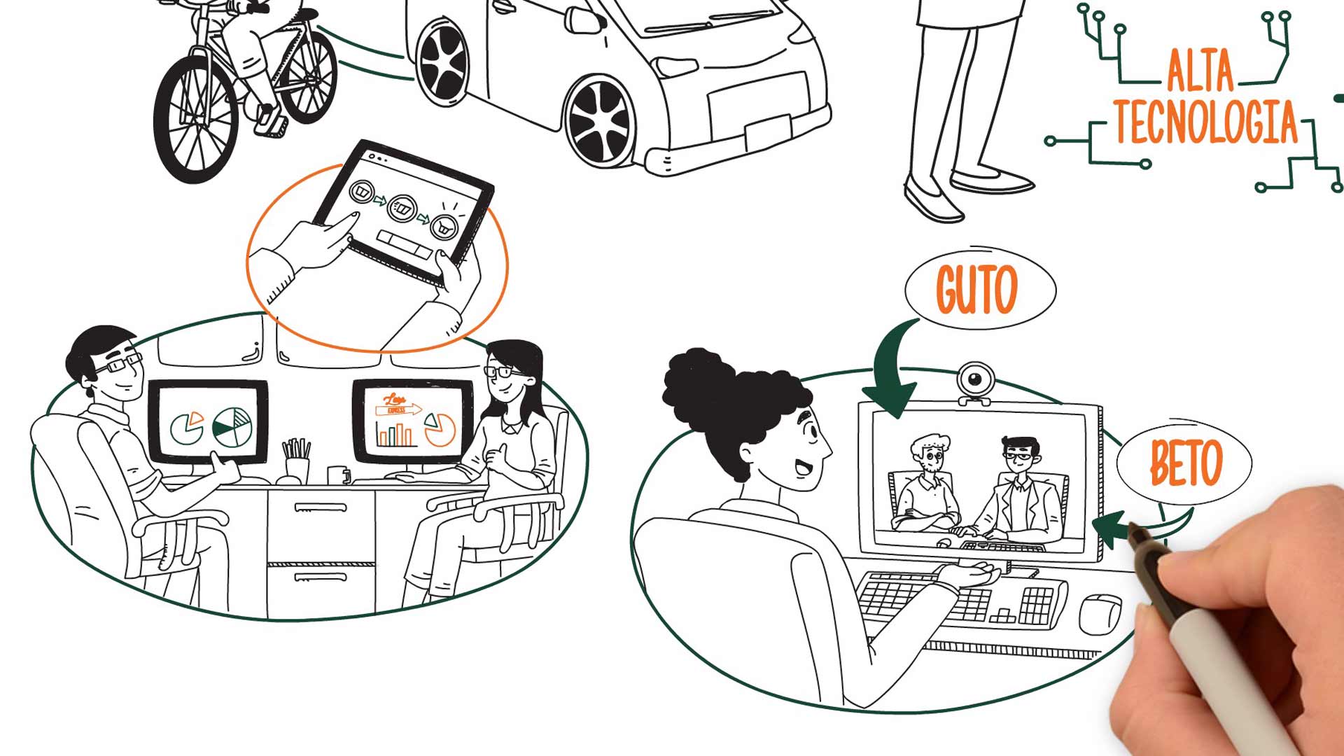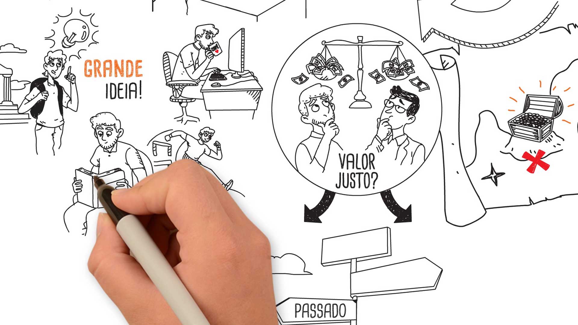 - Design e animação no estilo whiteboard, priorizando fluidez e clareza.