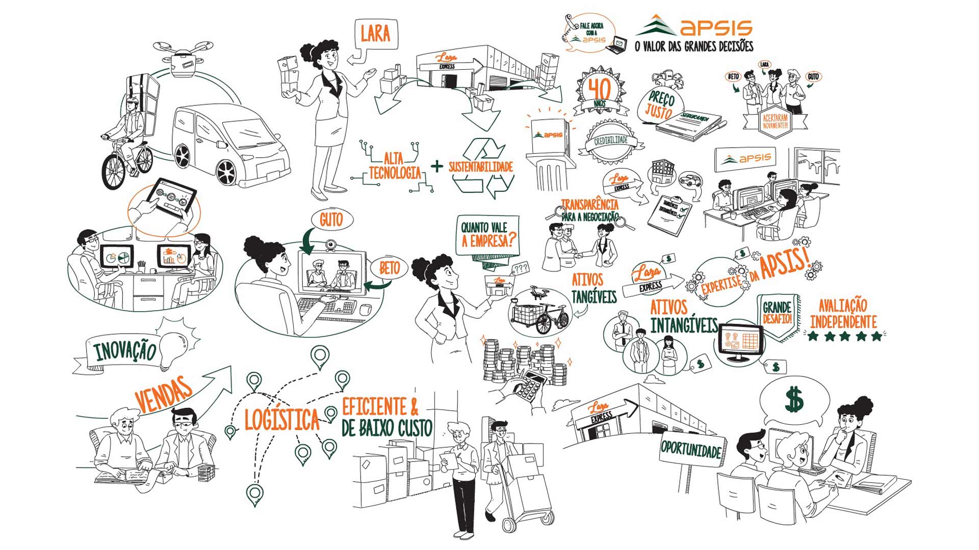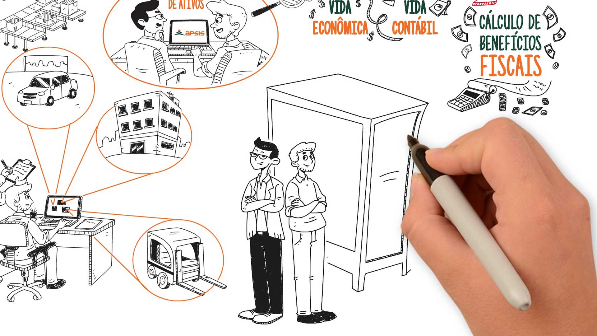 A Lumi desenvolveu uma série de vídeos em whiteboard animation, com roteiros construídos a partir de entrevistas com especialistas da Apsis. Unimos narrativa leve, metáforas visuais e ilustrações personalizadas para transformar temas densos em histórias visuais envolventes.