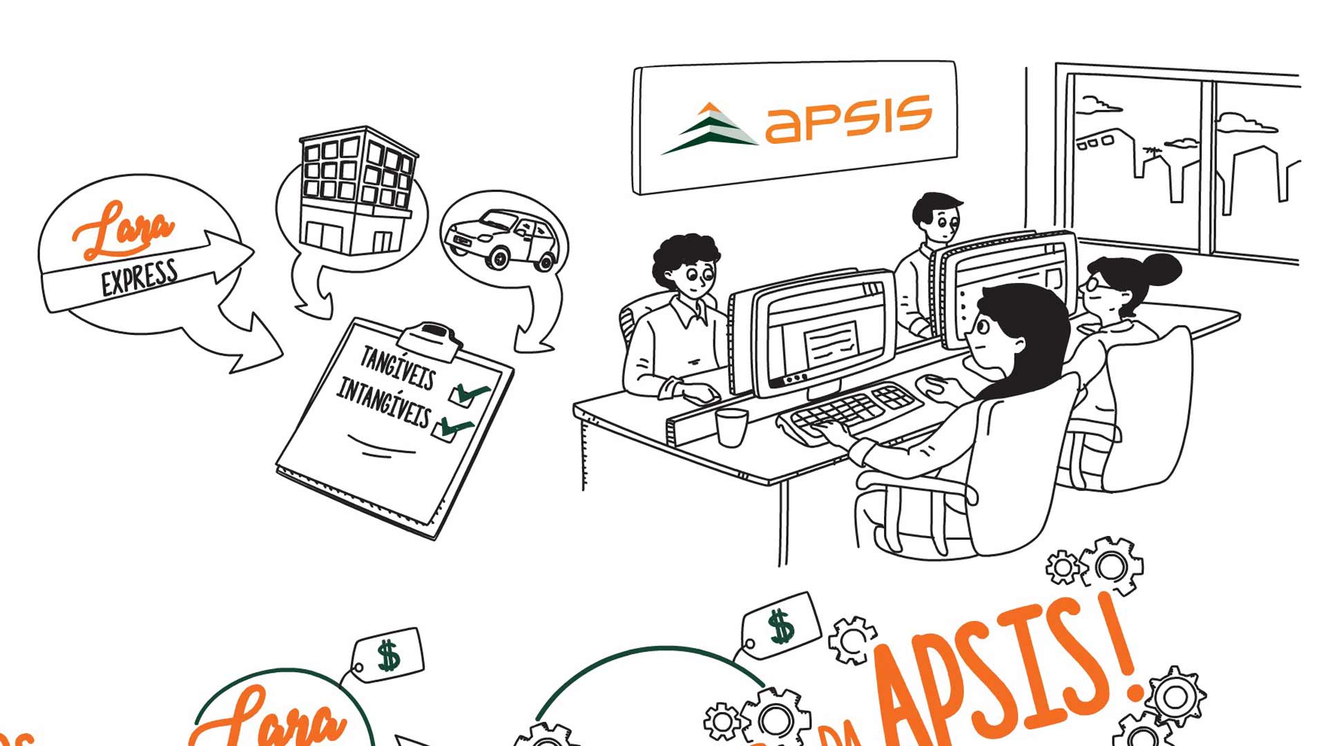 - Desenvolvimento de roteiros claros e didáticos, a partir de entrevistas com especialistas da Apsis.